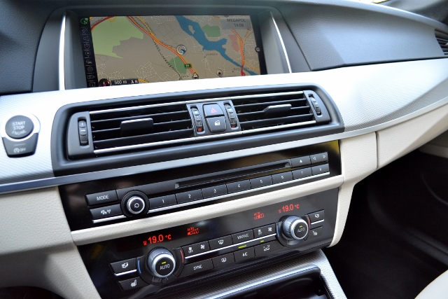 BMW 520d har en stor display i mittpanelen. Mediasystemet styrs i första hand med ett styrhjul som har väldigt bra styrkänsla. Tyvärr är menyhanteringen inte lika bra och jag själv känner mig inte hemma i detta system. Jag hade svårt att ställa in radion och programmera förvalsknapparna för radiokanalerna. Bluetoothstyrningen hade jag också problem med, i detta fall var det röststyrningen av telefonen som inte gillade det jag sa. Den ringde fel person eller föreslog en massa slumpartade siffror att ringa, till slut gav jag upp. BMW informerar mig senare att detta problem berodde på att röststyrningen enbart stödjer engelska och tyska, bilen var inställd på svenska. I stället tryckte jag på telefonknappen och vips kom min telefonbok upp med namnlista, det gick lätt att hitta telefonnummer i den stora displayen med hjälpa styrhjulet. Den manuella kontrollen av telefonens kontaktbok är föredömligt bra. När mediasystemets inställningar är gjorda och man lärt sig telefonstyrningen så är det bara att slappna av och njuta av körningen, ljudet i stereon är nämligen i toppklass, ljudkvalitén väldigt bra och det är en mjuk och fin ljudbild som möter öronen.